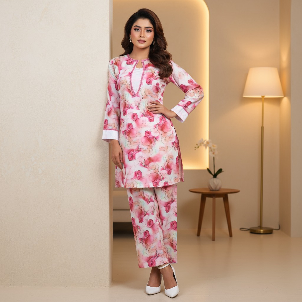 The Eid Special Ladies 2 PCS Set 2026 is a stylish women’s top and bottom set designed for modern fashion and festive comfort. Perfect for Eid celebrations, parties, and special occasions.